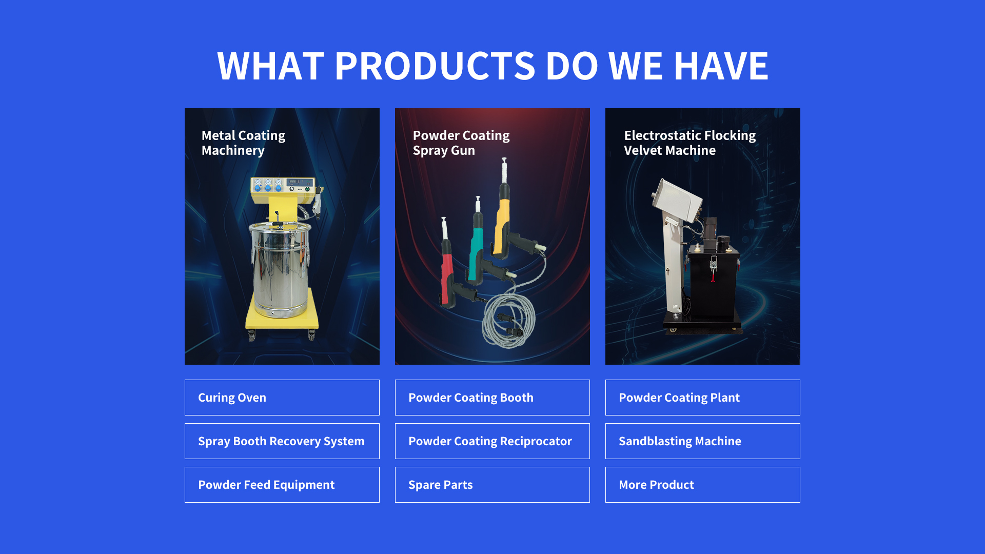 Powder Coating Guns For Sale are devices designed to apply dry powder coatings using electrostatic charging or manual spraying. Key components include a spray nozzle, powder hopper, electrostatic generator (for electrostatic models), trigger mechanism, and grounding cable.